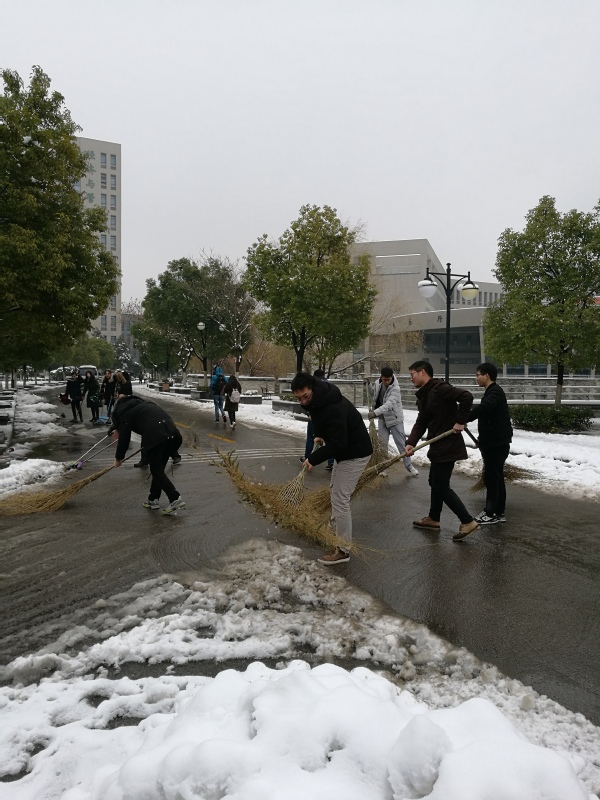 2018年南京的第一场大雪不期而至,大量的降雪造成校内各处积雪严重,影响师生的正常出行。1月5日上午,betway·必威西汉姆联40多名党员同学自发组成扫雪小分队,投入扫雪行动。大家拿着铁锹、大扫把纷纷出动,热火朝天地清扫着betway·必威西汉姆联的包干区——从四食堂至经管学院门口的路段,保障师生校内的安全出行。