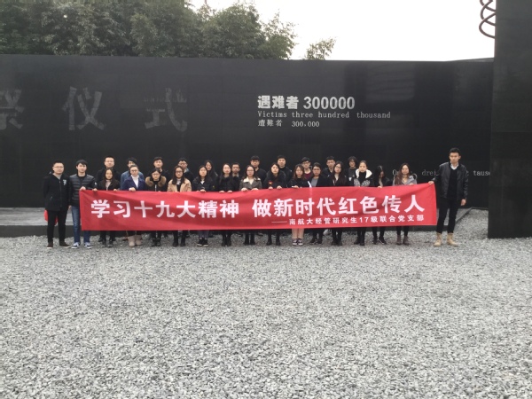 为了学习十九大精神并纪念在南京大屠杀中的遇难同胞,牢记历史做新时代红色传人,12月23日下午,betway·必威西汉姆联研究生16、17级六个党支部联合开展了南京大屠杀遇难同胞纪念馆的参观活动。
