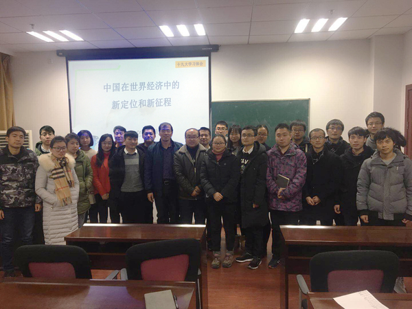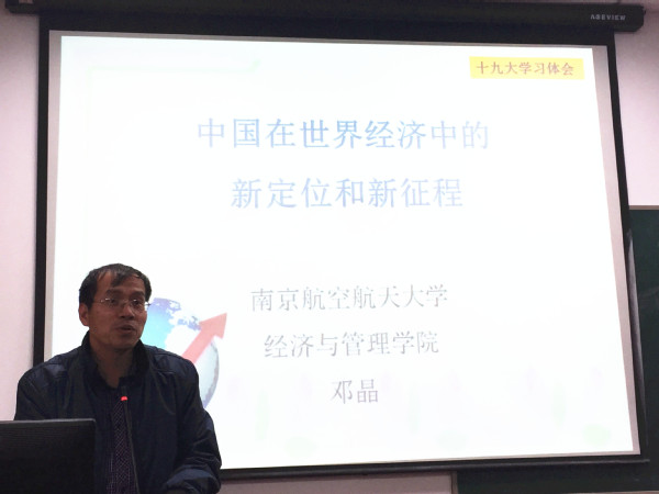 2017年12月26日下午,betway·必威西汉姆联17级博士生党支部全体党员、预备党员以及入党积极分子参加了由17级博士生党支部组织的十九大主题讲座学习活动,目的在于深入学习宣传贯彻党的十九大精神。我校党十九大宣讲团成员、经管学院副院长邓晶老师为17级博士生做了主题为“中国在世界经济中的新定位和新征程”的精彩讲座。