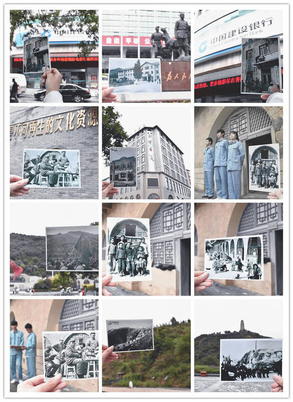 烈日炎炎下,团队依次前往原延安市地区医院、原延安建设银行、宝塔山等十余处历史建筑,并借鉴当下热门的新媒体拍照手法,手持延安的老照片,拍摄老照片里的“新延安”,同样的地址,却呈现出今昔完全不同的画面,让人不禁感受到革命老区在改革开放中日新月异的变化。