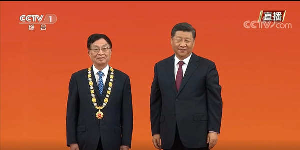 9月29日,中华人民共和国国家勋章和国家荣誉称号颁授仪式在人民大会堂隆重举行。中共中央总书记、国家主席、中央军委主席习近平向国家勋章和国家荣誉称号获得者分别授予“共和国勋章”“友谊勋章”和国家荣誉称号奖章并发表重要讲话。中国空间技术研究院技术顾问、研究员、我校航天学院院长叶培建院士获颁“人民科学家”国家荣誉称号奖章。