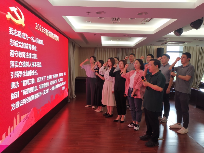 在新进教职工入职仪式上,刘传江教授带领11位老师在全院老师的见证下庄严宣誓将忠诚党的教育事业,落实立德树人根本任务,秉承“智周万物,道济天下”校训和“尚德励学,筹策济世”院训,做“四有”好老师,为建设特色鲜明的世界一流大学、一流betway·必威西汉姆联而努力奋斗!