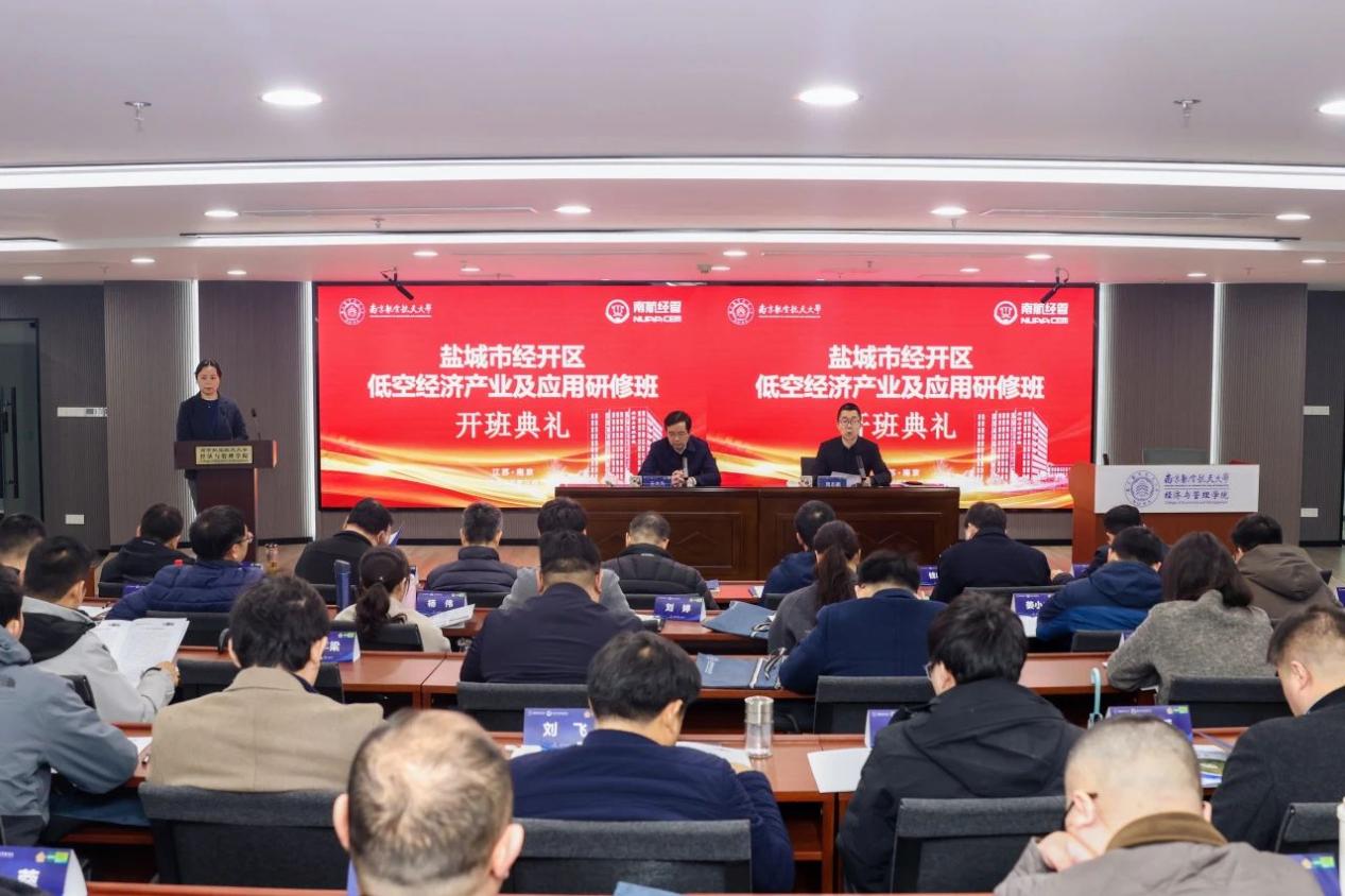 开班仪式上,盐城经济技术开发区党工委委员、组织部部长王大为作开班动员讲话,对参训干部提出三点要求:一是要提高站位,珍惜学习机会;二是要精研细悟,促进学用相长;三是要严守纪律,展现优良学风。经管学院副院长周志鹏教授对各位学员的到来表示热烈的欢迎,他指出学院开设低空经济产业及应用研修班旨在帮助参训单位和学员汲取高校前沿科研成果与专业知识,为盐城经济技术开发区在低空经济领域的产业布局、政策制定和应用推广提供有力支撑。