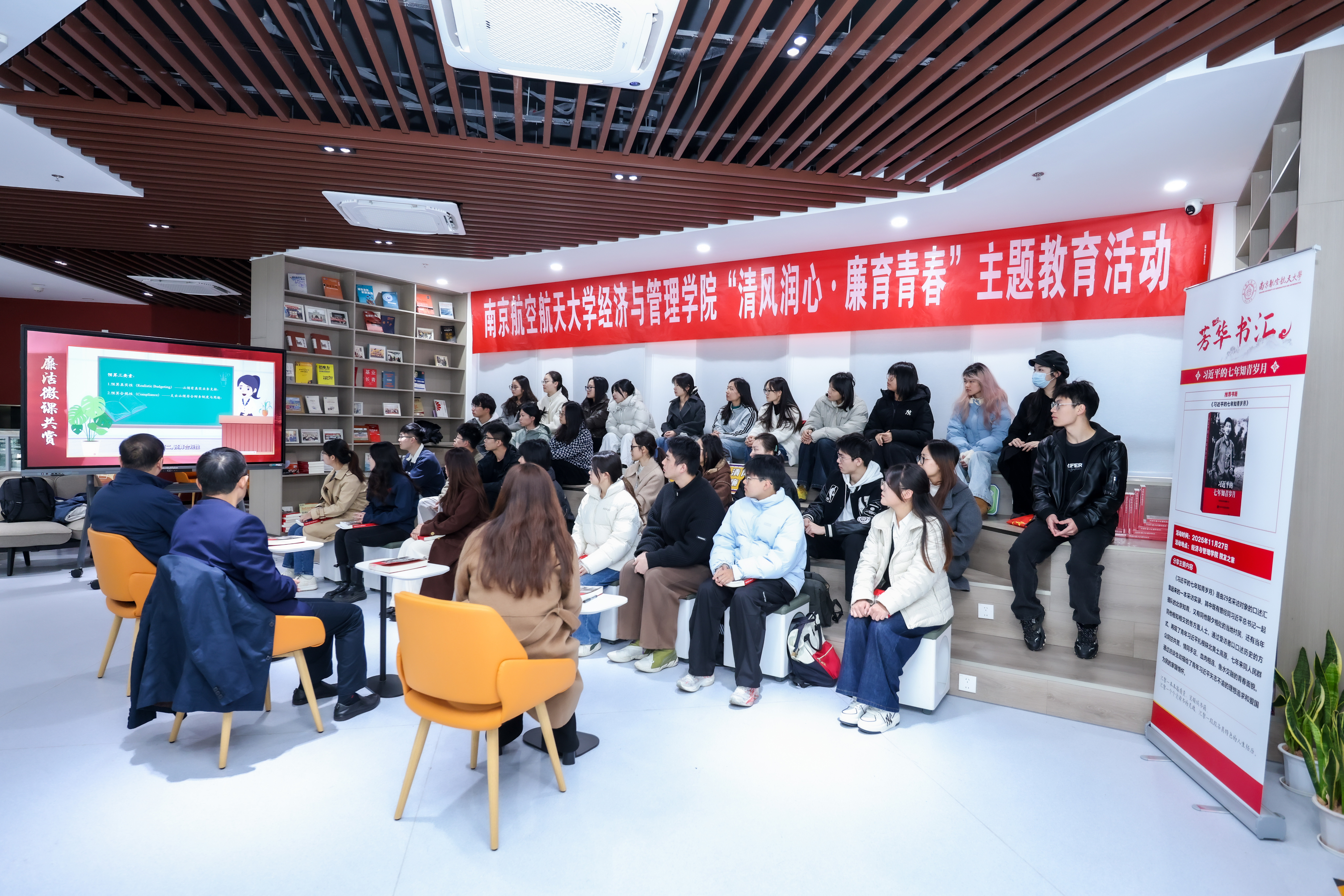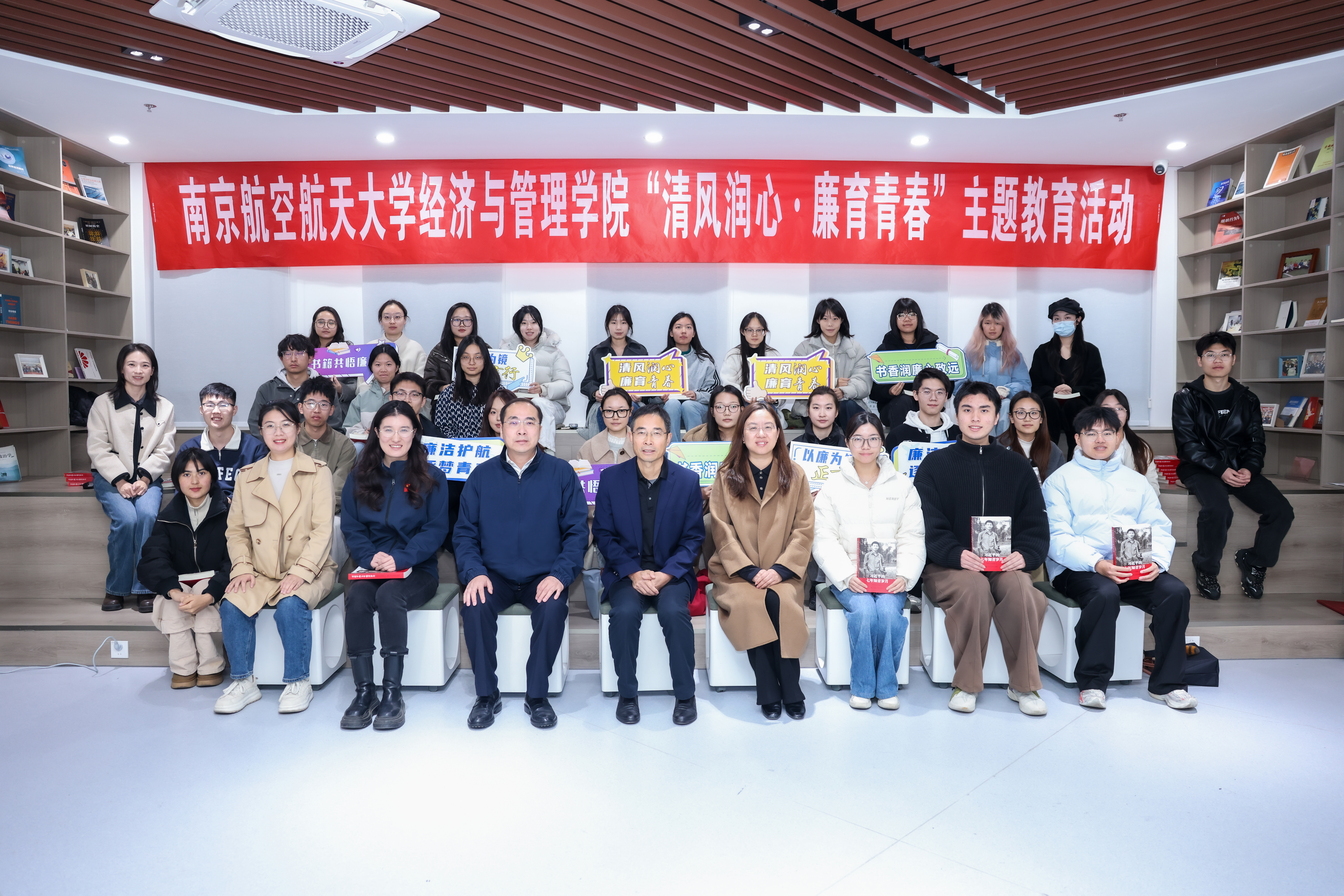 在“廉洁书籍共悟”环节,杭育新和学院领导为学生代表赠书,共同围绕《习近平的七年知青岁月》开展交流。杭育新分享了书中关于习近平总书记阅读的片段,勉励同学们在最美好的青春年华多读书、读好书,每年制定读书目标,用好碎片化时间,既要拓宽阅读视野,广泛涉猎,又要注重阅读深度,多读经典著作和专业书籍,让阅读成为一种习惯和生活方式。