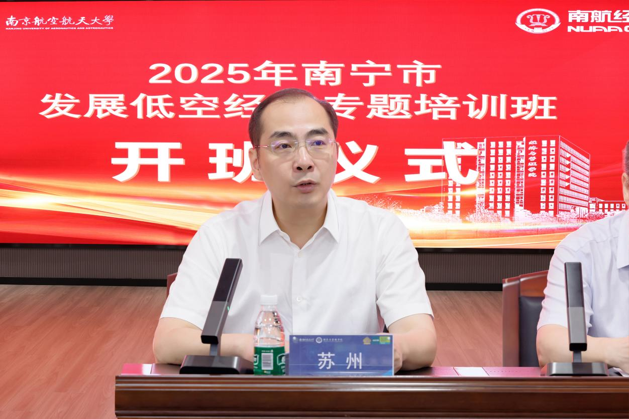 开班仪式上,betway·必威西汉姆联党委书记苏州代表学院致辞。他简要介绍了学校与学院的发展概况;他强调,作为“三航”特色鲜明高校,南航有责任发挥好教育科技人才优势,更好支撑服务地方政府在新发展阶段实现高质量发展。在国家着力发展低空经济政策导引下,经管学院依托南航在低空经济领域具有全学科要素、全专业覆盖、多平台支撑的独特优势,已成功举办系列低空经济产业及应用研修班,为各地规划发展低空经济和培养该领域专业人才持续赋能。学院高度重视本次研修班,设计构建了多元化课程与师资体系,期待通过学习培训,学校学院与南宁市链接拓展未来更广阔深入的交流合作,共同探索低空经济发展新路径和新应用。