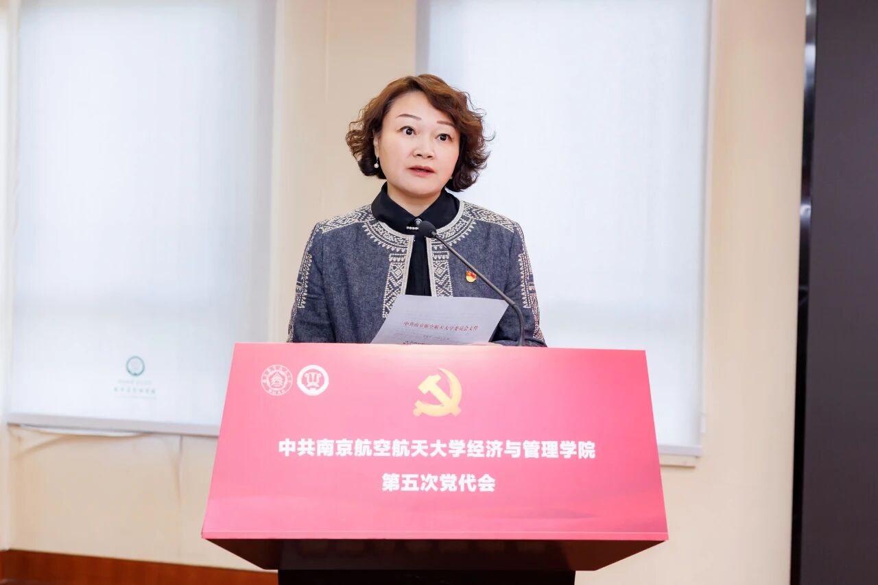 杭育新代表学校党委对大会的召开表示热烈祝贺,对经管学院党委过去七年取得的成绩给予充分肯定。他希望学院以此次大会为新起点,深入学习贯彻习近平总书记致南航建校70周年重要勉励精神,在学校党委坚强领导下,抢抓机遇、乘势而上,在新征程上实现更高质量发展。他对学院今后工作提出三点希望:一是坚持政治引领,筑牢一流学院建设根本保证;把党的全面领导贯穿办学治院全过程、各方面,推动“一融双高”实践落实落细。二是坚持内涵发展,提升一流学院建设核心能力;坚持为党育英才,打造一流人才培养范本;勇攀学科高峰,推动优势学科、新兴交叉学科群峰突起;超常规引育英才,加快建设高水平人才高地;聚焦国家战略,提升服务发展能力;深化国内外交流合作,在世界学术舞台和商学院改革发展中不断发出南航经管声音。三是坚持真抓实干,确保高质量实现一流学院建设目标;要以钉钉子精神,切实落实党代会战略部署,将蓝图变为现实。