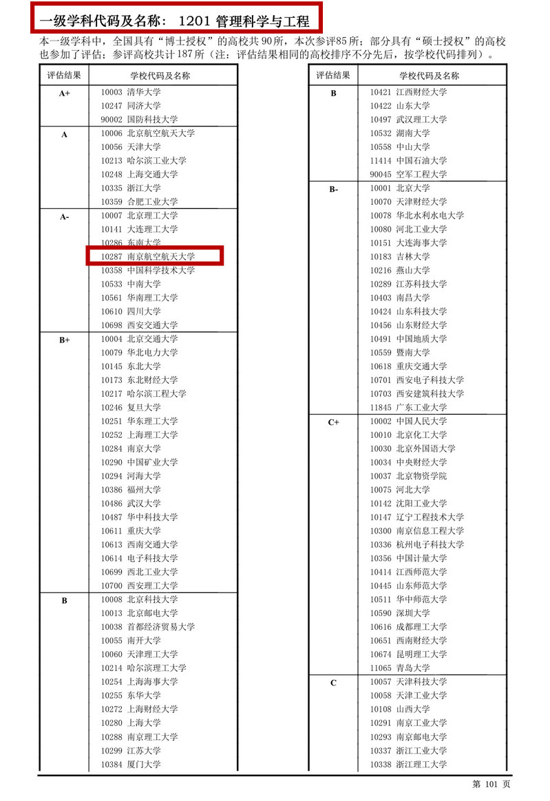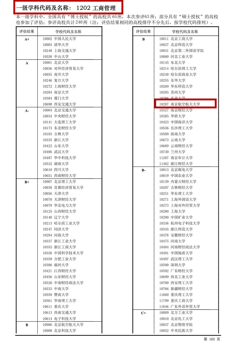 Since 2002, the discipline evaluation organized by China Academic Degrees & Graduate Education Development Center has been carried out for three rounds. The previous round of discipline evaluation, in the management science and engineering discipline, 52 universities attended, and our college ranked 27th. This time, in the management science and engineering discipline, a total of 102 colleges and universities participated in the evaluation, and the number of participants has increased significantly compared with the previous two rounds.