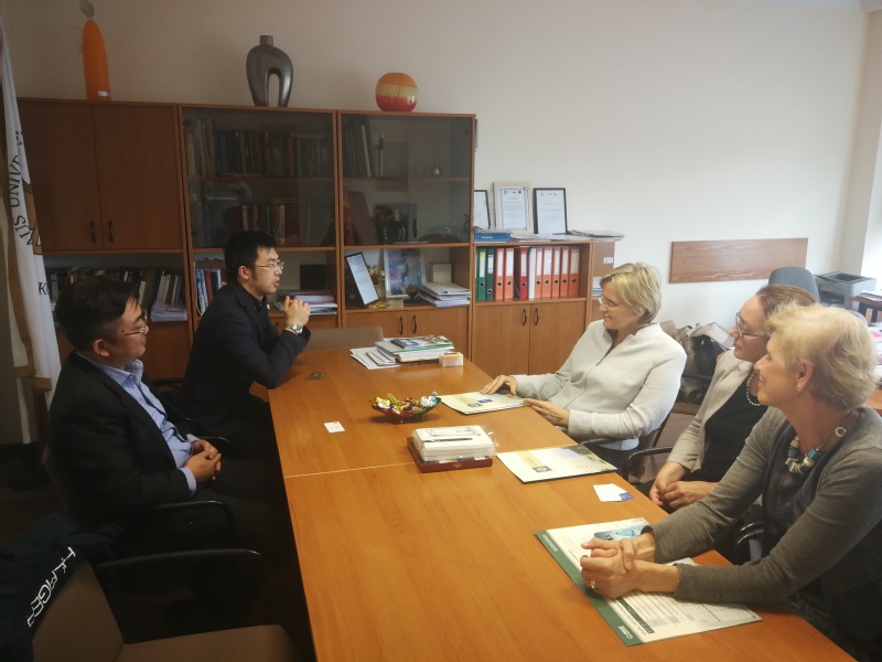 Professor Aida Macerinskiene warmly welcomes the Dean Zhou Dequn and his fellows, and introduces the history and the basic situation of Vilnius University to them. The faculty is made up of nine departments, including the business department, the department of economic information and so on, which train so many talents for the field of economics and management. Professor Macerinskiene expresses his strong willing to cooperate with our college in different ways.