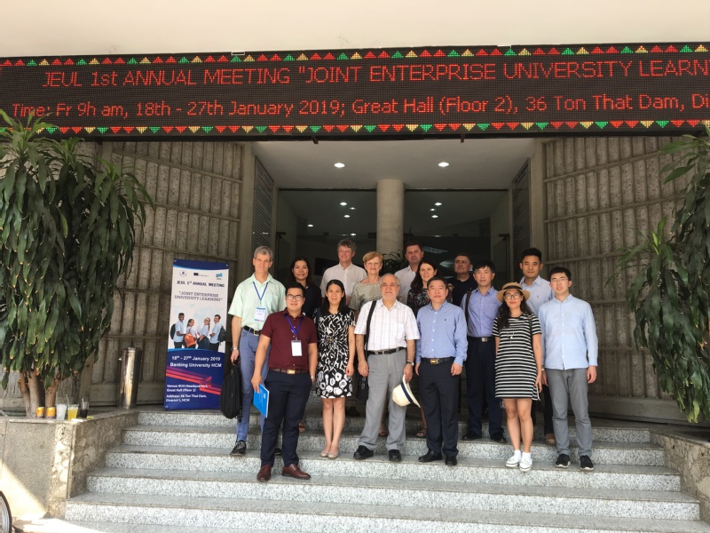 From January 19th to January 26th, 2019, Director Zhang Zhuo,Deputy Director Chen Feng of the International Cooperation Office, Director Kong Chuiqian of the Academic Affairs Office, Vice President Wang Ying of the College of Economics and Management, and Dr. He Shawei went to Ho Chi Minh Bank University, Vietnam to attend the annual meeting of 2019 Joint Enterprise University Learning (JEUL) International Symposium, which is the Erasmus plus Funded Project of the European Union.