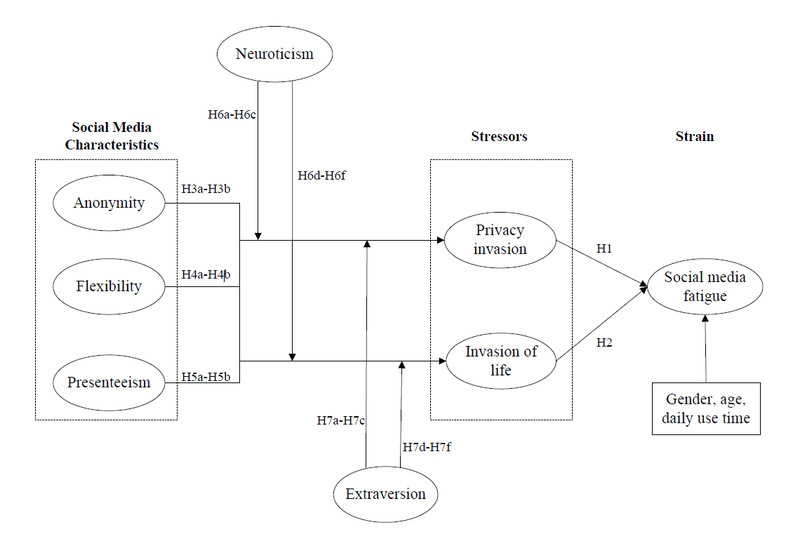 In recent years, social media users have experienced fatigue as evidenced by a decline in their active numbers. Although researchers have explored stressors that may cause social media fatigue, the characteristics that may cause social media fatigue are unclear. Drawing on the person-environment fit model, this paper proposes that social media characteristics of anonymity, flexibility, and presenteeism are related to stressors of privacy invasion and invasion of life, which further induce social media fatigue. The moderating roles of neuroticism and extraversion are also examined. Data was collected from 426 users of the WeChat application and analyzed using SEM with PLS. The results show that anonymity and presenteeism significantly influence privacy invasion and invasion of life, both of which are determinants of social media fatigue. Neuroticism strengthens the effect of social media characteristics on privacy invasion and invasion of life, while extraversion weakens these effects. These findings enrich the social media fatigue literature by revealing the root causes of social media fatigue, and explaining the personal differences in stressor perceptions. They also benefit social media practitioners by allowing them to understand how to design social media applications that improve user experience.